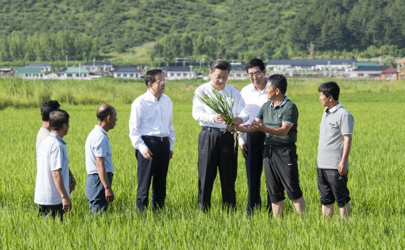 圖:二○一五年七月十八日,習近平在吉林調研,於延邊州和龍市東城鎮光東村視察水稻長勢 資料圖片