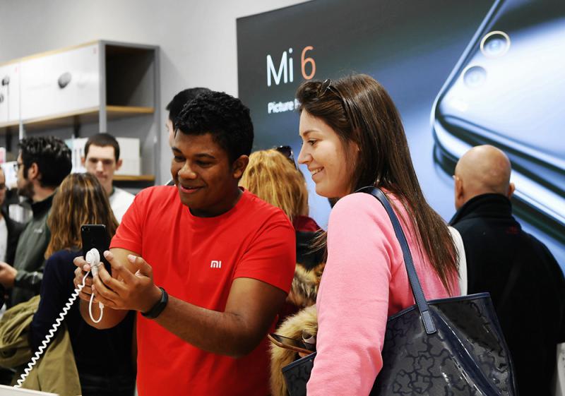 圖:在西班牙馬德里,「小米之家」專營店的店員為顧客介紹產品\資料圖片
