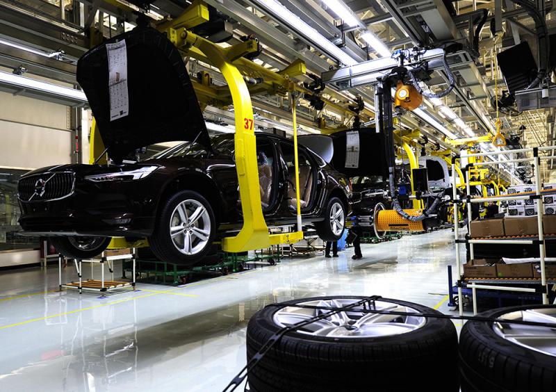 圖:去年4月,首批410台「中國智造」的沃爾沃S90長軸距豪華轎車從沃爾沃大慶工廠發運出口至美國\資料圖片