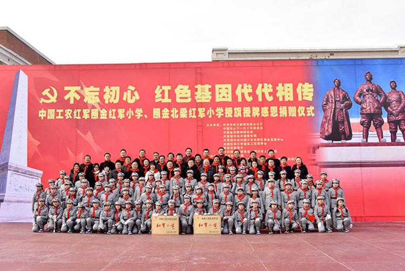 圖:去年一月七日,中國工農紅軍照金紅軍小學、照金北梁紅軍小學授旗授牌感恩捐贈儀式在照金中心小學舉行\網絡圖片