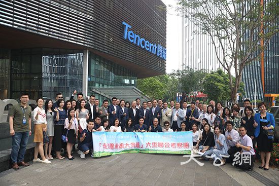 由大公網與粵港澳大灣區青年總會、香港房地產協會共同發起的「走進粵港澳大灣區」大型聯合考察團參觀深圳騰訊總部。/ 大公網記者 姚勇攝