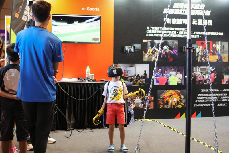 圖:去年首屆香港運動消閒博覽,小朋友在虛擬實景工作坊體驗遊戲\資料圖片