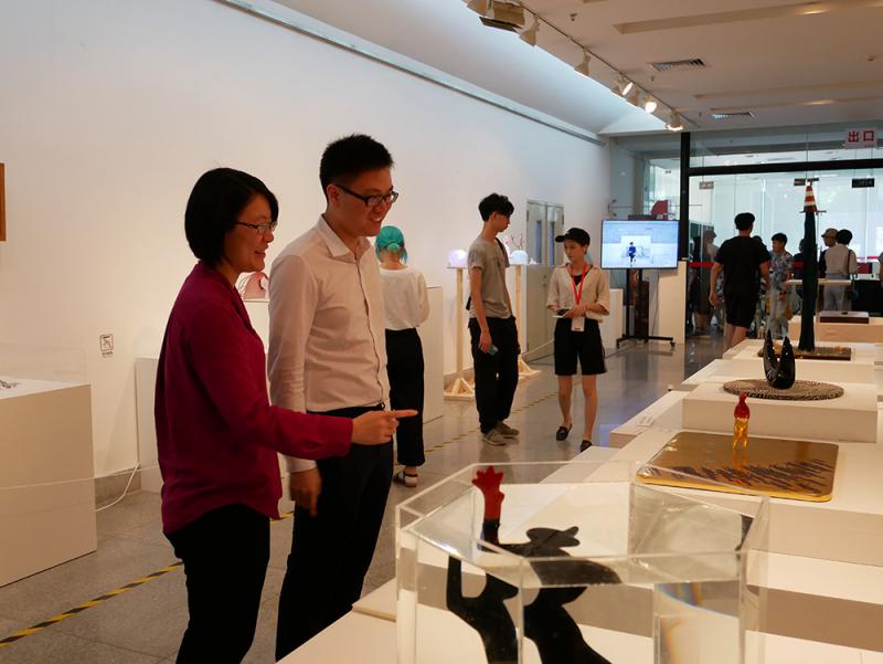 圖:謝曉虹(左)與金霖沅參觀廣州美術學院本科畢業設計作品展\大公報記者黃寶儀攝
