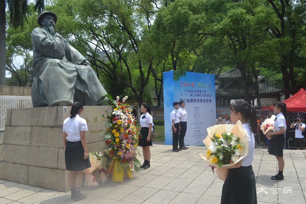 學生代表向林則徐雕像敬獻鮮花(大公網記者敖敏輝攝