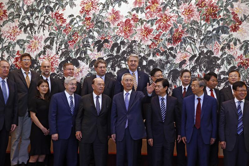 圖:中美全面經濟對話中方牽頭人劉鶴率領的中方團隊與美商務部長羅斯帶領的美方團隊在第三輪磋商結束後合影\美聯社
