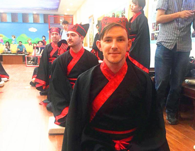 第一次穿漢服行漢禮的經歷讓加拿大學生既新鮮又激動,每一個人都異常認真和恭敬。加拿大學生Adam表示,這一切都讓人感覺似乎到了漢代中國,自己現在就好像是一名漢代女性。