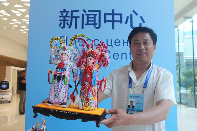 圖:國家級非遺項目菏澤面塑傳承人穆緒建展示面塑作品\大公報記者丁春麗攝