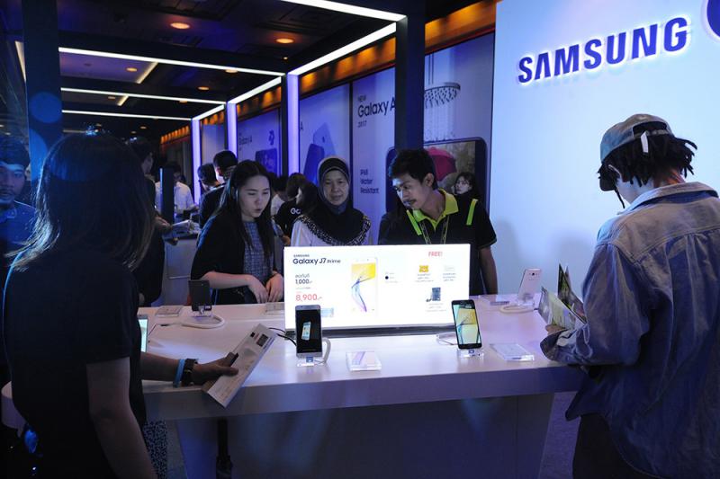 圖:中國反壟斷機構近日對三星、海力士、美光三家芯片巨頭立案調查。圖為三星在展會展示手機產品\資料圖片