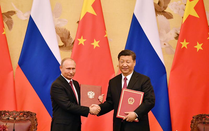 圖:中國國家主席習近平同俄羅斯總統普京會談後簽署中俄聯合聲明\中新社