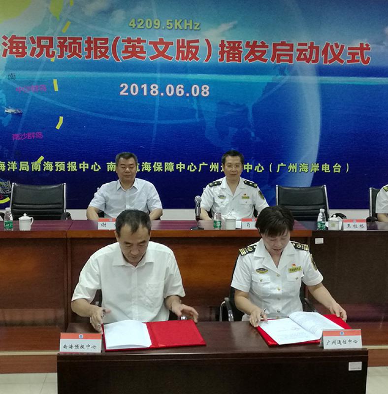 當日,南海預報中心與廣州通信中心在廣州海岸電台舉行了「南海海況預報(英文版)播發啟動暨簽約儀式」暨「南海海況預報(英文版)首播儀式」。
