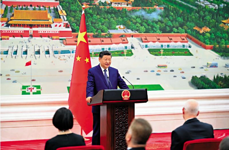 儀式結束後,習近平在北京廳對使節們發表講話。