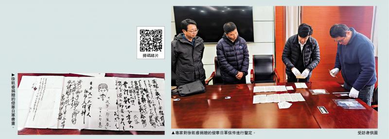 圖﹕專家對徐凱睿捐贈的侵華日軍信件進行鑒定。\受訪者供圖