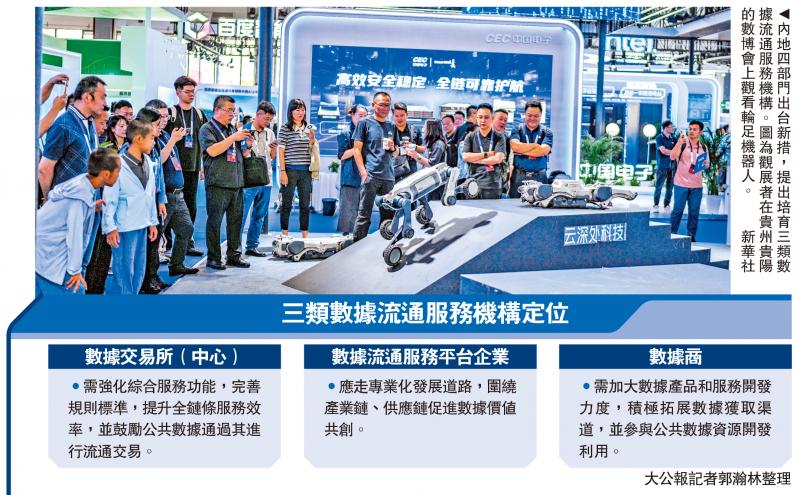 《意見》還首次明確培育數據交易所(中心)、數據流通服務平台企業和數據商三類機構,分別承擔綜合服務、專業化發展和數據產品開發職能。明確各類數據流通服務機構功能定位,推動各盡其能、互有側重、協同發展。支持機構協同人工智能企業建設高質量數據集、提供數據治理與模型訓練等服務,助力「人工智能+」行動落地。\大公報記者 郭瀚林北京報道