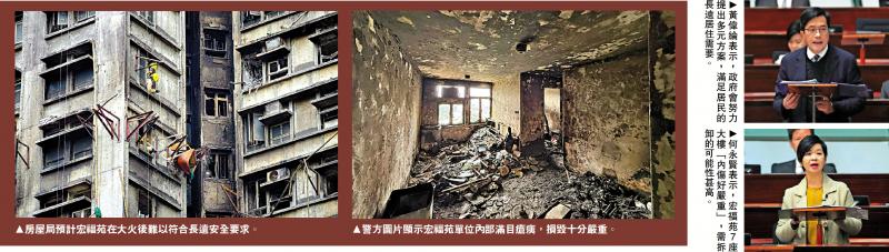 「應急住宿安排工作組」組長、財政司副司長黃偉綸表示,政府會努力提出不同的具針對性、切實可行的多元方案,實實在在地滿足居民的長遠居住需要。而以「樓換樓」的方式購買業權是「特殊中的特殊」,政府不會將該做法視作先例。房屋局局長何永賢表示,火災後宏福苑7座大樓「內傷好嚴重」,預計樓宇難以符合長遠安全要求,維修費用難以估計,故需拆卸的可能性甚高。\大公報記者 義昊