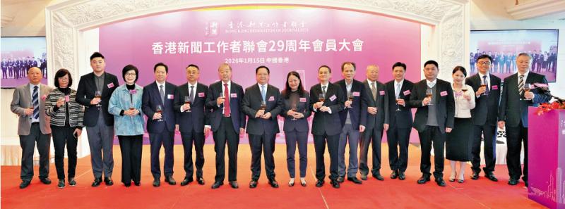 展望2026年,李大宏強調,這一年是中國式現代化進程中的重要一年,是「十五五」規劃開局之年,是香港加快由治及興進程的關鍵之年,也是新聞聯成立30周年的重要節點。新聞聯將重點推進五項工作:舉辦「灣區故事」優秀新聞作品徵集評選;深化內地參訪採風計劃;繼續舉辦國情與專業研習班;升級會員服務體系;以及精心組織第12屆理事會換屆選舉工作,為新聞聯高質量發展奠定堅實組織基礎。