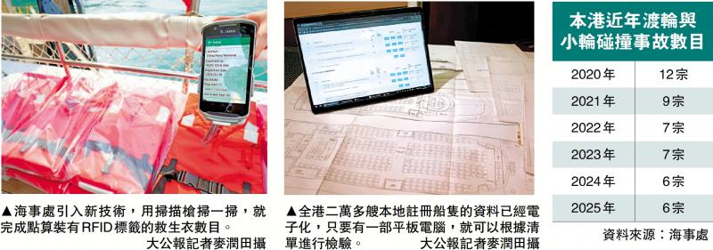海事處的驗船工作是香港海上安全的重要防線,海事處在2023年引入電子化驗船系統,將檢驗流程標準化,至今已完成全港2萬多艘本地註冊船隻的資料電子化,驗船查檔時間可從數小時縮短至數分鐘,還能記錄船隻「非緊急問題」,在次年驗船時自動彈出提醒,杜絕疏漏。