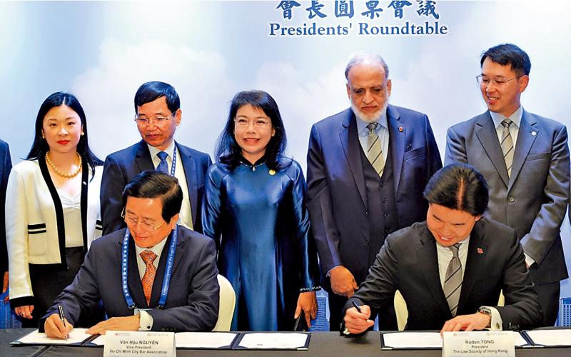 【大公報訊】記者龔學鳴報道:2026年香港法律年度開啟典禮匯聚了來自世界各地的法律界領袖,齊在香港這個國際法律及爭議解決中心進行專業交流。香港律師會會長湯文龍昨日代表律師會,分別與胡志明市律師協會及墨西哥全國企業律師協會簽訂諒解備忘錄,加強香港法律界與這兩個司法管轄區之間的交流合作。兩個協會分別由胡志明市律師協會副會長Nguyen Van Hau,以及墨西哥全國企業律師協會會長Jose Angel Santiago Abrego代表簽署這項重要的里程碑。