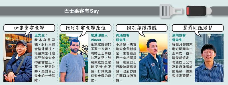 內地旅客程先生:不清楚下周實施安全帶新規定,未留意到巴士有相關提醒,希望巴士行駛時廣播提醒,政府亦應在關口加強宣傳。