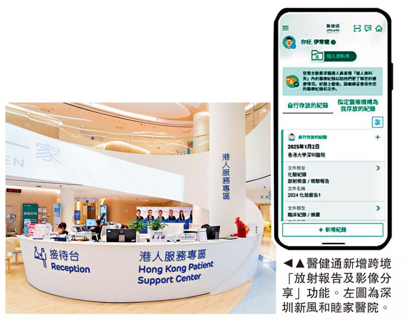 為進一步便利港人跨境就醫,醫務衞生局昨日宣布,提升醫健通「個人資料夾」功能,自下周二(27日)起,港人到港大深圳醫院等三間指定境外醫療機構就醫,可直接將CT、MRI等檢查的高解像度放射影像報告,存入個人醫健通戶口,毋須再自行攜帶影像資料往返兩地。