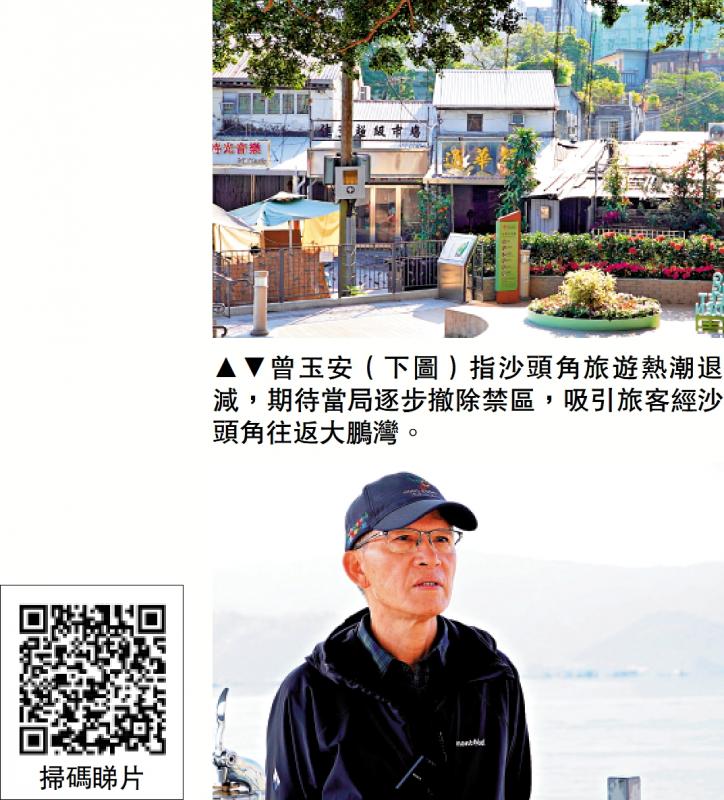 曾玉安指數年前政府開放沙頭角旅遊,在區內增設旅遊配套設施,包括打卡景點、公園、公眾廁所等,又廣泛宣傳沙頭角美食,是有了好開始,但仍不足夠。他指逐步撤除禁區,令本地及海外旅客不需任何證件都可隨時隨地來到沙頭角,再出海前往大鵬灣,做到無障礙旅遊:「攞證(禁區紙)是障礙,長者不懂上網,因為禁區障礙,阻隔了75年沙頭角及大鵬灣一帶的島嶼發展。」他指沙頭角每日個人遊名額有3000個,目測平均只約200至300人。根據警方提供數字,2025年6月至11月,個人旅遊禁區許可證申請量,由2025年6月的5592宗,升至同年11月的7680宗。