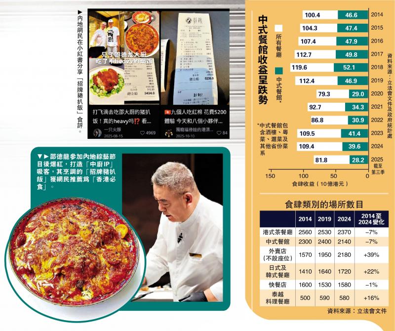 香港亦有廚師在內地參與飲食節目爆紅,為品嘗名菜的遊客絡繹不絕。早前參加內地綜藝節目《一飯封神》成名的邵德龍接受《大公報》專訪時表示,打造中式廚藝IP(個人品牌)是其中一個吸引客人的方法。香港餐務管理協會認為,打造中式廚藝IP「有得搞」;有經濟學者指出,透過政府協助舉辦具認受性的中菜比賽,幫助打造一些有質素的「中廚IP」,有助振興傳統酒樓。\ 大公報記者 伍軒沛、馮錫雄