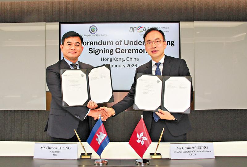 【大公報訊】香港通訊事務管理局辦公室與柬埔寨電信監管機構(TRC)昨日簽署諒解備忘錄,加強合作打擊詐騙電話和短訊,以及管理濫發信息。
