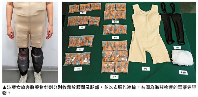 案情指出,海關人員於上述日子在深圳灣管制站離境大堂截查一名55歲女旅客,經檢查後發現她將該批藥物針劑分別收藏於腰間及腿部,並以衣服作遮掩。
