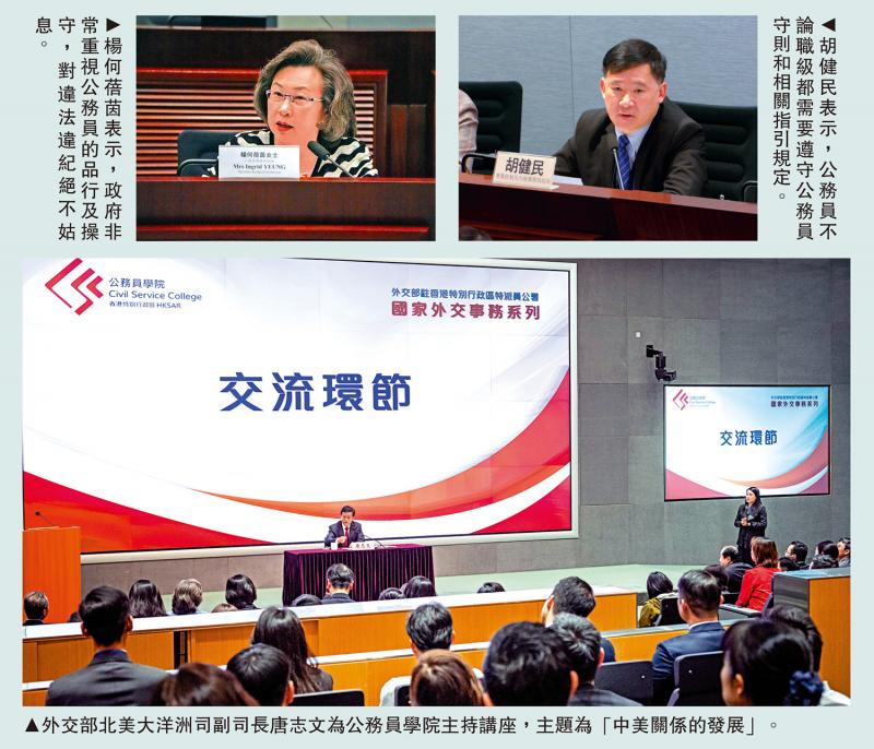 楊何蓓茵表示,政府非常重視公務員的管理工作,亦了解社會對公務員的期望日益提高,公務員事務局已於2024年6月更新《公務員守則》,重申《憲法》與《基本法》共同構成香港特別行政區的憲制基礎及秩序、在這個基礎下公務員的憲制角色和責任,以及公務員須恪守的12項基本信念和操守準則,作為所有公務員在日常工作、決策和行為的重要指南。