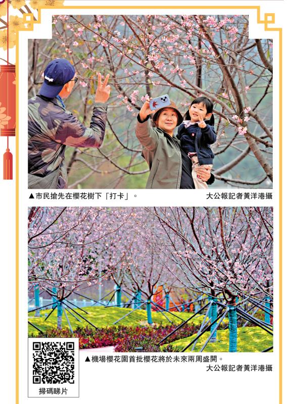不少港人喜歡到東南亞旅遊賞櫻,鄭晴知道香港都有賞櫻好地方。東涌赤鱲角機場櫻花園今年擴大至3萬平方呎,增加了39棵適合華南地區天氣栽種的品種「好運來」,令總數增至160棵,首批櫻花將於未來兩周盛開,預計接近西方情人節時,是最佳賞櫻期。機管局特別設計了一條高低起伏的賞花路線,有山水襯托,配合背景的纜車及塔,希望令「打卡」效果更好。園區過去兩年已吸引共20萬人次遊覽,預計今年可吸引十萬人次賞櫻。