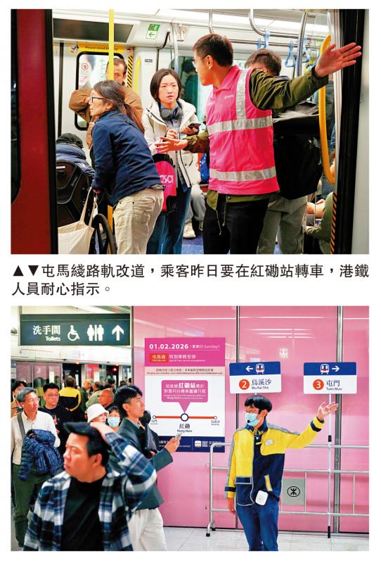 港鐵昨日凌晨起進行路軌改道工序,包括走線、斜度、機電設備等。除了今次特別車務安排,港鐵下月8日會再進行工程,屆時乘客同樣要在紅磡站轉車,港鐵亦會加派員工協助。