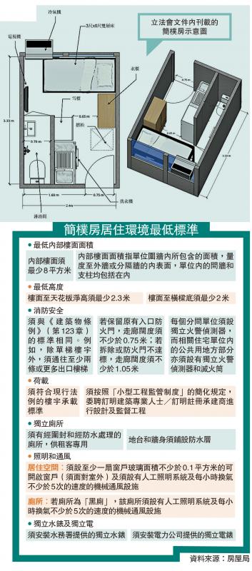 政府早前推出的簡樸房規管制度居住環境最低標準實務守則,簡樸房經營者認為部分內容難以執行,有立法會議員建議政府向業主提供更多簡樸房資訊,並推出樣板房和材料清單供業主參考。\大公報記者 易曉彤