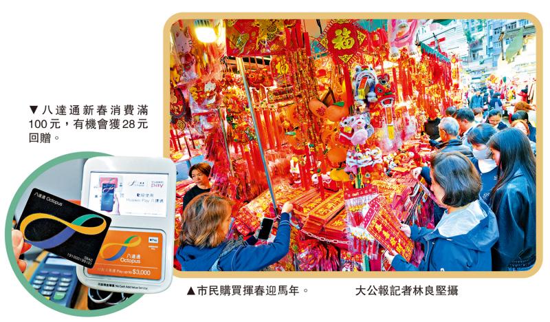 新春將至,香港市面的節日氣氛日漸濃厚。八達通昨日公布,由2月14日至19日(農曆年廿七至年初三)期間,手機八達通用戶或樂悠咭持有人,在1500間參與商戶拍卡消費滿100元,有機會即時獲得2元至28元八達通新年獎賞。優惠涵蓋29個零售及餐飲品牌,包括百佳超市、美心西餅及太興等,八達通表示將「盡量做到人人有賞」。此外,八達通App將繼續開放「e利是」功能,用戶可以隨時隨地透過App遙距向家長和親友發送利是,或自定「e利是」不同金額及數量,讓親朋好友掃二維碼抽利是。