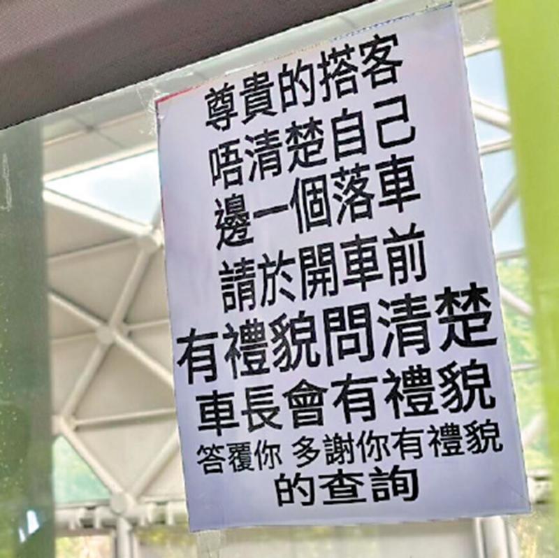 香港交通工具之完善,實屬舉世聞名,而以快著稱的小巴,是不少人的選擇。不過,坐小巴下車要提早揚聲,有時也屬於要克服的「心理關口」。近日,有網民在小紅書分享一幀照片,顯示小巴上貼有告示,提醒搭客若不清楚在哪站落車,「請於開車前有禮貌問清楚,車長會有禮貌回答」。該網民認為這是小巴式幽默。