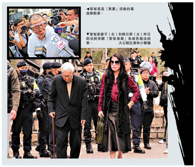 黎智英長期打着新聞自由、言論自由旗號,在香港煽動仇視中央和特區政府情緒,給香港帶來極其嚴重的傷害,罪無可恕。判決結果合法合理合情,既彰顯了法治,也維護了公義。\大公報記者 龔學鳴