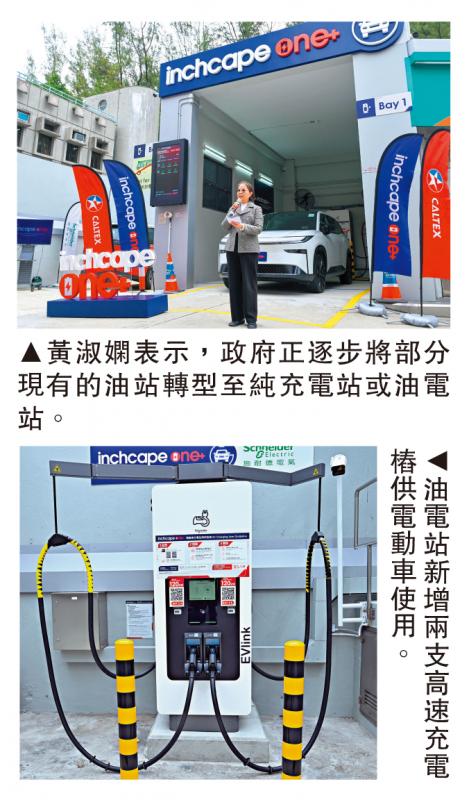 【大公報訊】全港首個由油站轉型的油電站昨日啟用。此油電站為政府透過調整油站土地契約條款,向油站營運商提供誘因,推動現有油站加裝電動車充電設施的油電站。