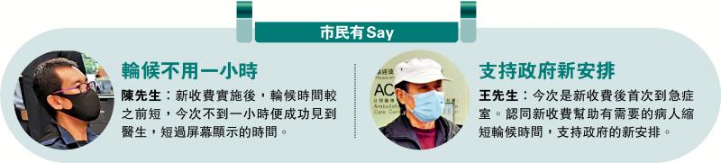 王先生:今次是新收費後首次到急症室。認同新收費幫助有需要的病人縮短輪候時間,支持政府的新安排。