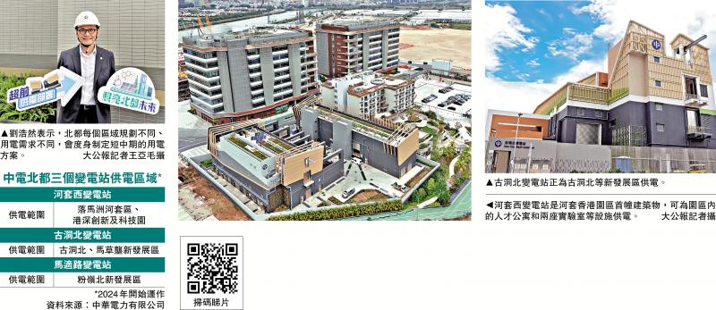 北部都會區是本港未來發展的重要引擎,為配合北都發展的用電需求,中電位於新發展區的三個變電站自2024年起投入服務,其中河套西變電站是河套深港科技創新合作區香港園區首幢建築物,可為整個園區,包括去年底落成的人才公寓、兩座實驗室等設施供電。