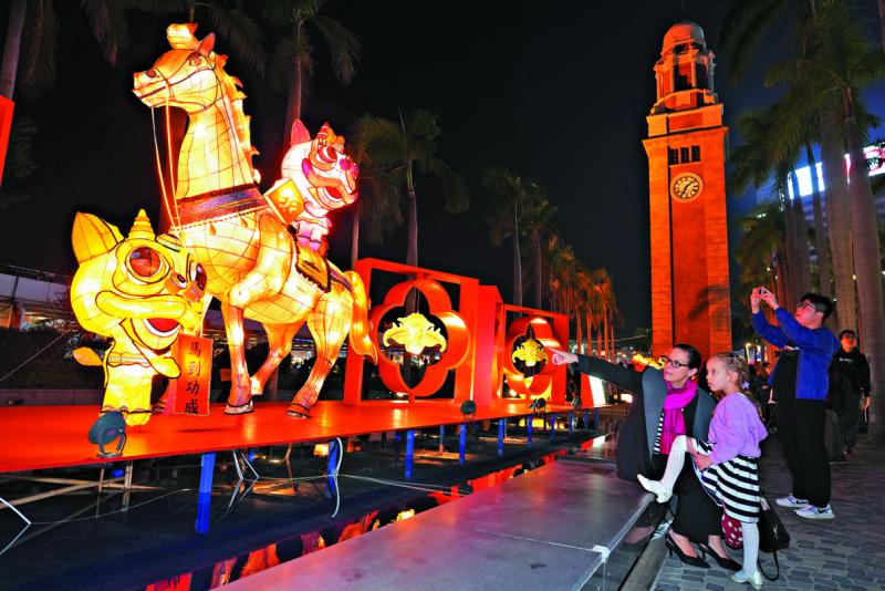 圖﹕香港文化中心露天廣場昨日起展出璀璨綵燈,與市民和旅客共迎新歲。\大公報記者麥潤田攝