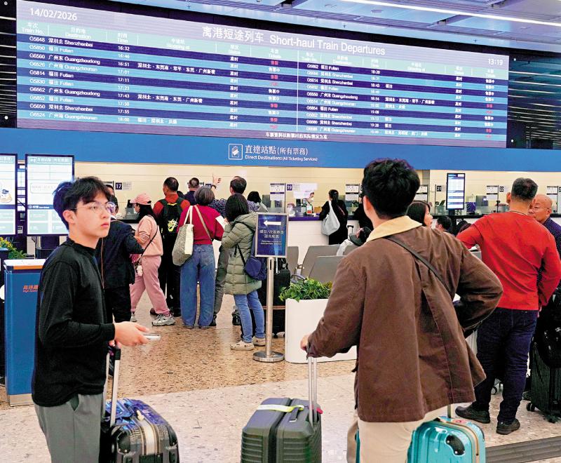 鄧女士一行人昨日在高鐵站集合,準備前往廣西南寧遊玩,然後考慮轉往越南,「好不容易才能有一個一家人都一齊放假的假期,當然要大家齊齊整整出發!」她說,會趁這個機會體驗外埠不一樣春節。來自山東的李先生則於昨日乘高鐵來港旅遊,他說,「現在北方天寒地凍的,剛好來南方享受一下好天氣。」