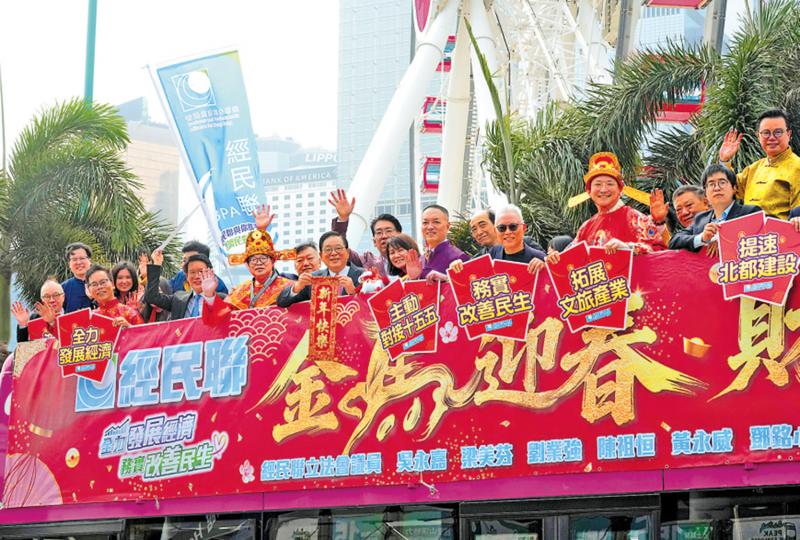 【大公報訊】記者義昊報道:經民聯昨日舉辦新春花車巡遊團拜活動。經民聯多位核心成員、立法會議員、區議員、青委會和地區事委會成員一同乘坐新春開運花車,穿梭港九多區,向市民及旅客拜年,祝願香港在新的一年開運昌隆,馬到成功,經濟繁榮興旺!