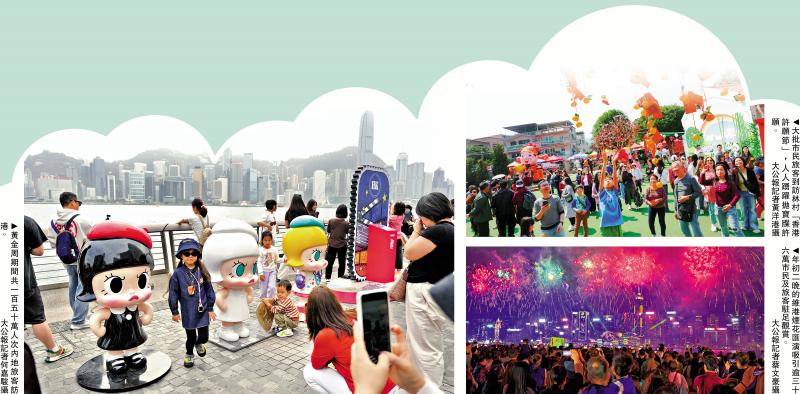 新春期間,本港各項大型活動及景點均大受歡迎,包括年初一晚舉行的國泰新春國際匯演之夜吸引大批市民及旅客參與,年初二晚的維港煙花匯演共吸引逾36萬市民及旅客駐足觀賞,年初三賽馬日亦吸引逾2萬名旅客前往馬場,感受香港賽馬旅遊的獨特氣氛。