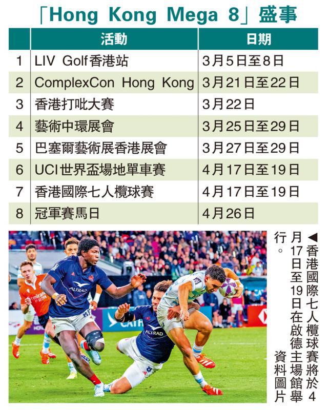 【大公報訊】記者卓彤報道:踏入3、4月份,香港盛事活動浪接浪。旅發局今年以「Hong Kong Mega 8」為主題,推廣3月至4月在港舉行的八項精彩盛事,匯聚世界級運動、藝術與文化盛事,向全球展現香港「亞洲盛事之都」的非凡活力。