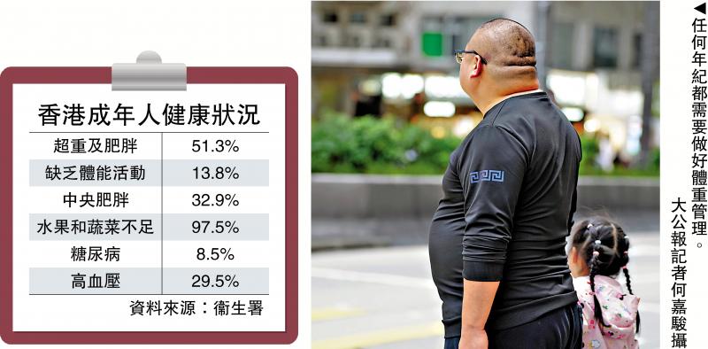 昨日是世界肥胖日,特區政府昨日推出香港首份《體重管理行動計劃》,響應國家體重管理年的部署和世界衞生組織遏制肥胖症加速計劃全球框架。《行動計劃》目標在三年內,將港人肥胖率降至五成以下,首年望提升市民對體重管理的意識,後續將強化基層醫療的「守門人」角色,並促進中西醫協作。