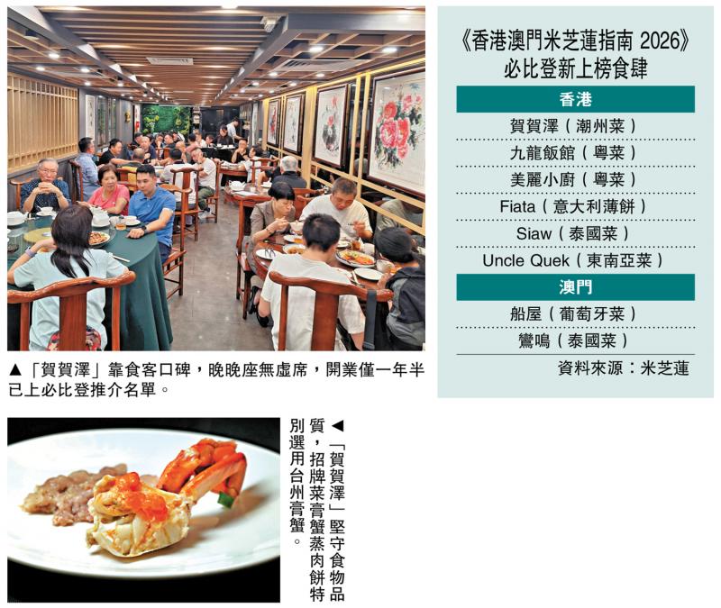 香港餐飲業持續面臨經營壓力之際,位於尖沙咀山林道、開業僅一年半的潮州菜館「賀賀澤」卻逆市突圍,在昨日公布的《香港澳門米芝蓮指南》必比登推介名單新上榜。菜館由三兄弟主理,有30年廚藝經驗的老闆莊先生(Bosco)表示,開店是為了圓廚師夢,憑藉自營食材供應的優勢,既保證新鮮又壓低成本。對於「米芝蓮死亡之吻」,他認為「做好自己本分就夠」。