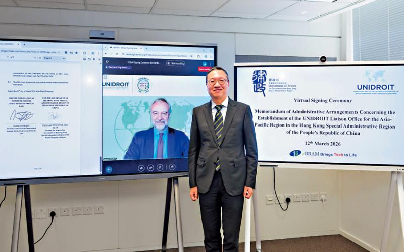 林定國在儀式上致辭時表示,香港特區作為國際法律樞紐,擁有穩健的普通法制度,法律體系備受國際認同,是私法協會設立其首個區域辦公室的理想據點。備忘錄的簽署是落實聯絡辦公室進駐香港的重要一步,標誌着相關工作全速推進。他感謝私法協會一直以來對香港特區和律政司工作的信任和支持,指聯絡辦公室預計將於今年11月開幕,屆時,律政司會在香港法律周2026期間與私法協會舉辦亞太國際私法峰會與百周年區域活動,進一步鞏固律政司與私法協會的緊密合作關係。