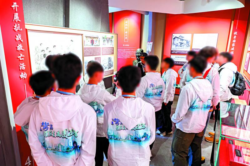 圖﹕有在修例風波中被捕至今未被檢控的青年,警隊過去一兩年推出特別項目,透過正向活動給予更生機會。圖為更生青少年參觀三譚革命事跡展覽館。