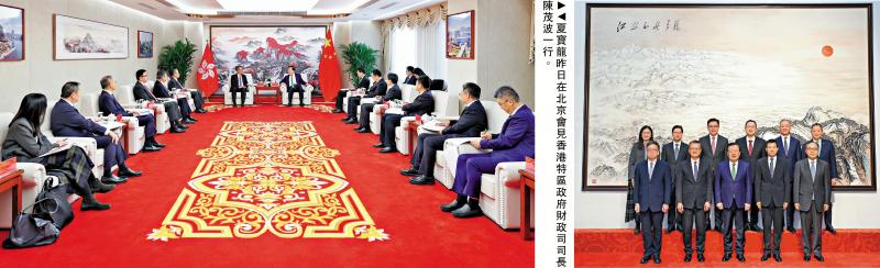 另據香港特區政府新聞處表示,昨日上午,中央港澳工作辦公室主任、國務院港澳事務辦公室主任夏寶龍會見陳茂波一行。夏主任表示,去年底,習近平主席在聽取李家超行政長官述職報告時,對港澳主動對接國家「十五五」規劃提出明確要求。今年全國人大通過的「十五五」規劃綱要,支持香港鞏固和提升競爭優勢,更好融入和服務國家發展大局。相信特區政府會帶領社會各界結合實際,制定好香港首個五年規劃,進一步鞏固提升香港國際金融、航運、貿易中心地位,加快國際創新科技中心建設,為香港的經濟發展注入更大動能。