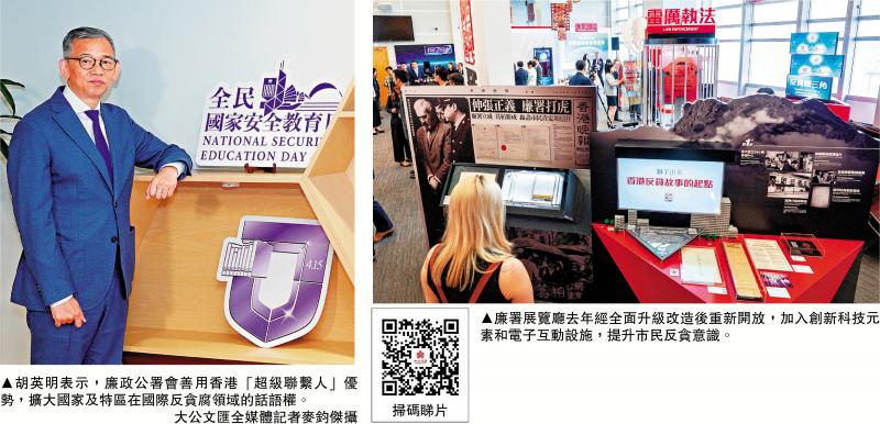 國家「十五五」規劃明確指出,要強化國家安全教育,築牢人民防線。同時,國務院2月發布《「一國兩制」下香港維護國家安全的實踐》白皮書(《白皮書》),亦強調香港要以高水平安全護航「一國兩制」事業高質量發展。適逢今年是香港第十一個「全民國家安全教育日」及香港國安法實施六周年,廉政專員胡英明接受香港大公文匯傳媒集團訪問時表示,廉政公署視維護國家安全為己任,全方位打造愛國愛港廉潔團隊,在日常工作中,善用香港「超級聯繫人」優勢,擴大國家及特區在國際反貪腐領域的話語權,並以科技賦能反貪工作,為「一國兩制」行穩致遠注入廉潔動力。\大公報記者 劉妍伶