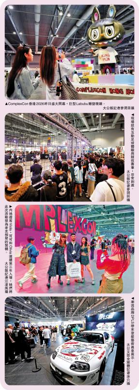 香港3月盛事停不了!國際潮流文化盛事「ComplexCon香港」昨日開幕,一連兩天在亞洲國際博覽館舉行。今年活動的藝術總監由香港藝術家龍家昇擔任,場內匯聚最新潮流、音樂、藝術等多種元素,150個潮流品牌攤位售賣限量產品、潮流玩具和服飾等,吸引大批「潮人」到場「朝聖」,有人提早一晚到場排隊等候。中國原創IP Labubu成為焦點,有旅客專程來港為搶購限量版Labubu,預計場內整體花費數萬元。