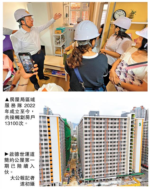 【大公報訊】記者鄭文迪報道:簡樸房條例本月起生效,有人關注部分劏房租戶或因業主改建單位而面臨逼遷。房屋局昨日表示,六隊涵蓋港九新界不同地區的區域服務隊一直透過不同的渠道,接觸分間單位租戶,並提供適切支援,自區域服務隊2022年成立至今,合共接觸分間單位租戶13100次,已轉介約1000個有需要住戶申請簡約公屋及過渡性房屋,單計去年至今,已轉介約370個住戶申請簡約公屋及過渡性房屋。